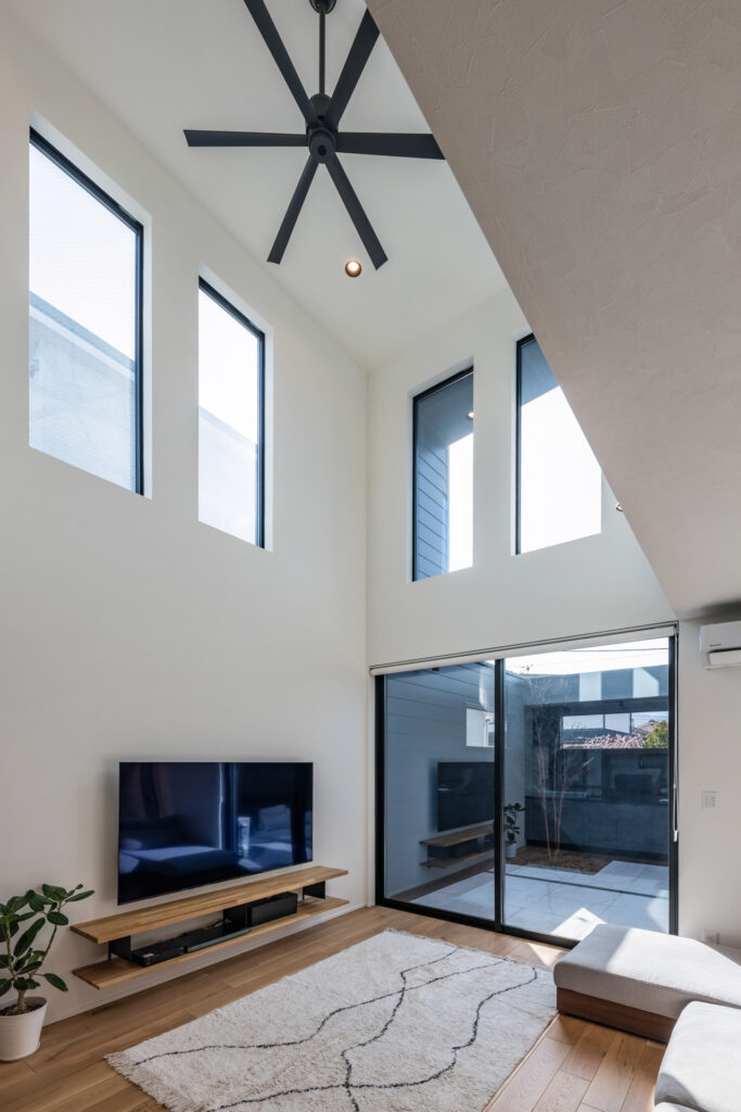 高天井では空気が立体的に動くため、自然換気や冷暖房効率の改善に大きく役立ちます。