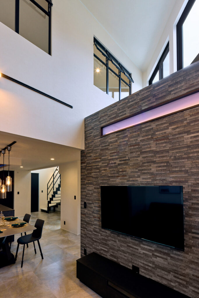 吹抜け空間はインテリアの幅を広げます。梁や勾配天井、照明デザインなどを工夫することで、 非日常的な雰囲気を日常に取り入れることが可能です。