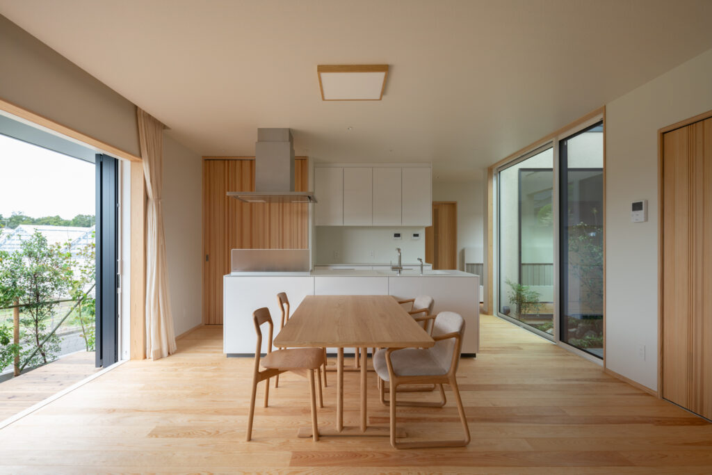 また、中庭は光と風を住まい全体に届ける役割も果たします。 特に都市部では隣家が近く採光が難しいケースもありますが、中庭を設けることでどの部屋にも自然光を届けられるのです。