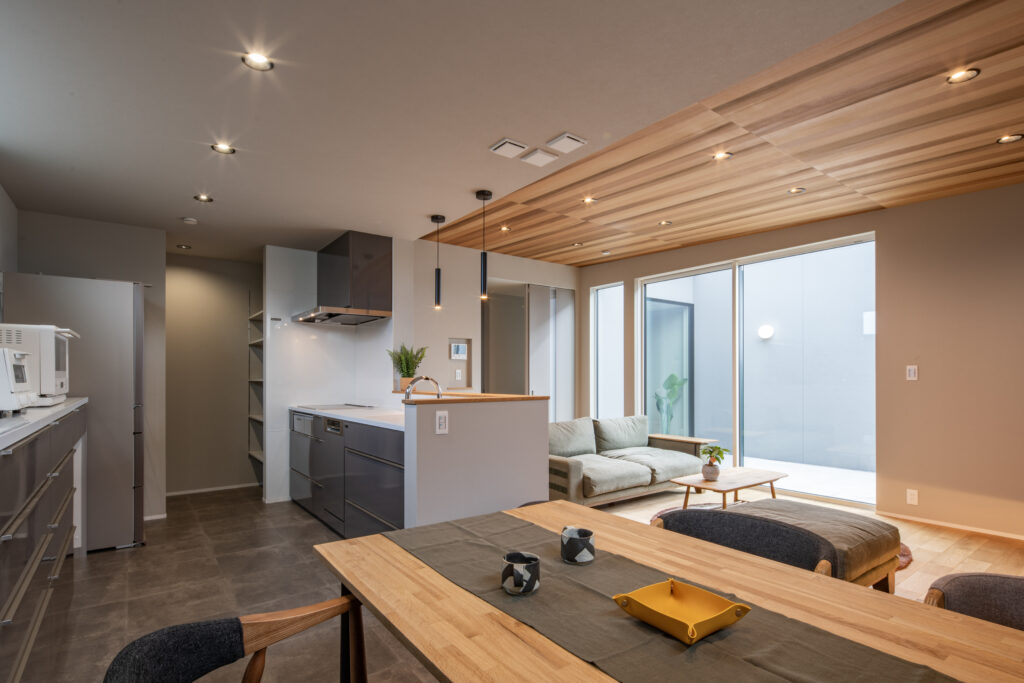 そして、寝室や水回りなどの配置計画や廊下を適切に設けることでLDKへ生活感を持ち込まないような間をつくるように工夫した。
